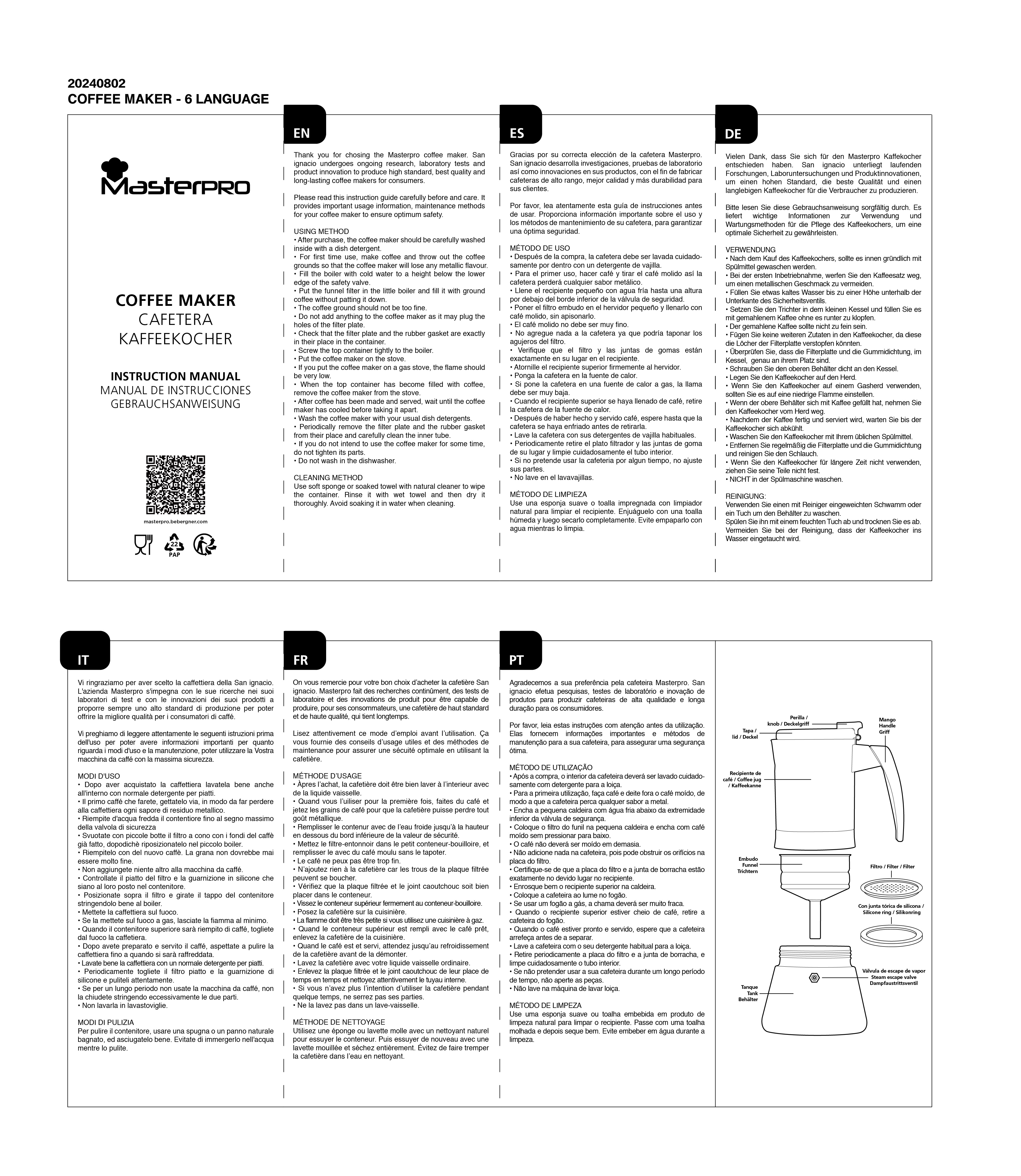 Cafetera para 6 tazas fabricada con acero inoxidable de alta calidad, perfecta para preparar deliciosos cafés con el sabor de siempre. Apta para inducción.